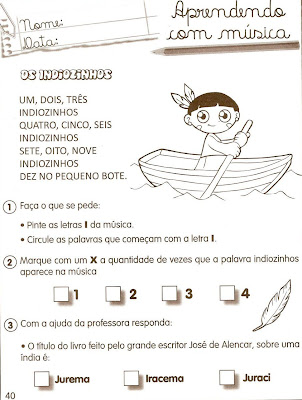 Segue algumas sugestões para trabalhar com a vogal I.